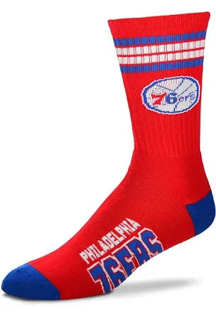 PHILADELPHIA 76ERS 4 STRIPE DEUCE MENS CREW SOCKS Size Large 10-13