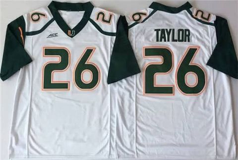 SEAN TAYLOR MIAMI HURRICANES #26 College WHITE Throwback Stitched Jersey Men’s size XL